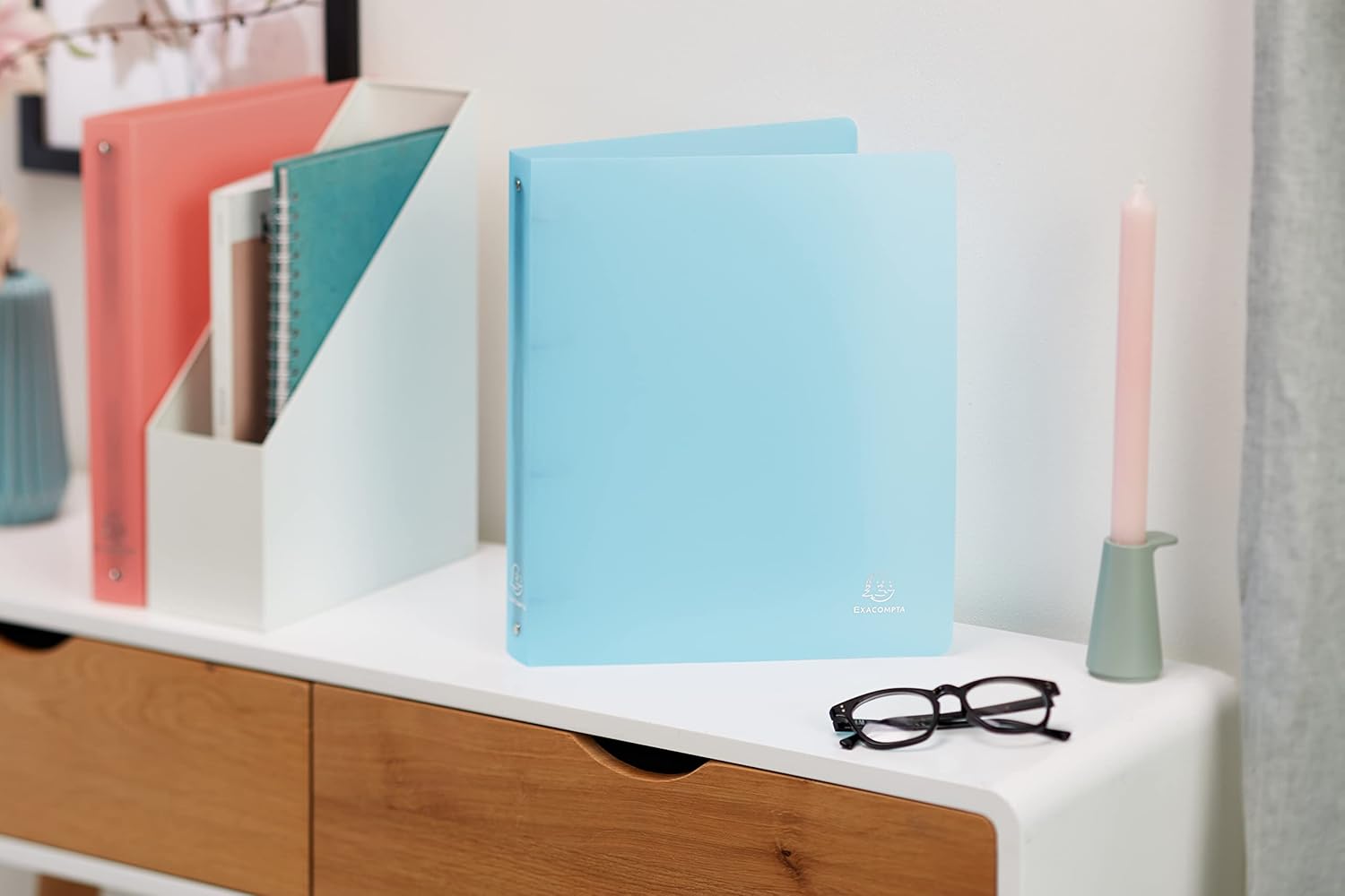 Exacompta Ref - 51970E Chromaline Pastel PP Ring Binders. A4+ in size for filing or archiving sheets, punched pockets or dividers. 320x268mm with 4 metal 'O' rings and a spine width of 40mm enabling you to file up to 275 sheets of paperwork. Made from a flexible and transparent polypropylene which is ideal for any type of filing. Comes in an assortment of soft pastel colours enabling you to create a zen or hygge atmosphere for the home, office or school. Pack of 5 in an assortment of colours, coral, mauve, pastel blue, pastel green and yellow.