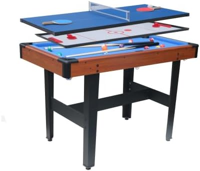 Place of Origin:ChinaMain Color:Brown+BlueMain Material:MDFProduct Style:American TraditionalUse Case:Dining RoomSport or Fitness Type:Balls SportsFitness & Sports Function:MultifunctionalProduct DimensionsAssembled Length (in.):47.60Assembled Width (in.):24.00Assembled Height (in.):31.00Weight (lbs.):43.00Package SizeLength (in.):52.17Width (in.):28.35Height (in.):5.31Weight (lbs.):55.00Product Featuresmulti game table,billiard table,table tennis,multifunctional games table,desk game47.6"x24"x31"function: billiard table, table taennis,dining table,pool table ,imdoor,desk gameFamily movemen,adult,young personTable Size:47.6" x 24"x 31" Playfield Dimension: 43.5X19.5 " Cloth:Green Velvet cloth Tennis TOP: 1/4"MDF With Blue PVC , Side Apron:1/2"MDF With Wooden PVC. End Apron:1/2"MDF With Wooden PVC. Top Rail:(5/8"+1/2")MDF With wooden PVC, Leg:1/2" MDF With Black PVC, Leg Leveler:Ø1.5"plastic; Carton Size:52.17"x28.35"x5.31"; N.W./G.W.: 20/25KGS . Accessories:1 set of 1-1/2"billiard balls , 1 Pcs brush, 1Pcs Triangle Rack, 2 Pcs Chalk; 2Pcs Cue, 2 Pcs table tennis ball, 1 Pcs table tennis net, 2 Pcs table tennis paddle,2 Pcs table tennis net post. 2 PCS HOCKEY STRIKER, 2 PCS HOCKEY PUCK