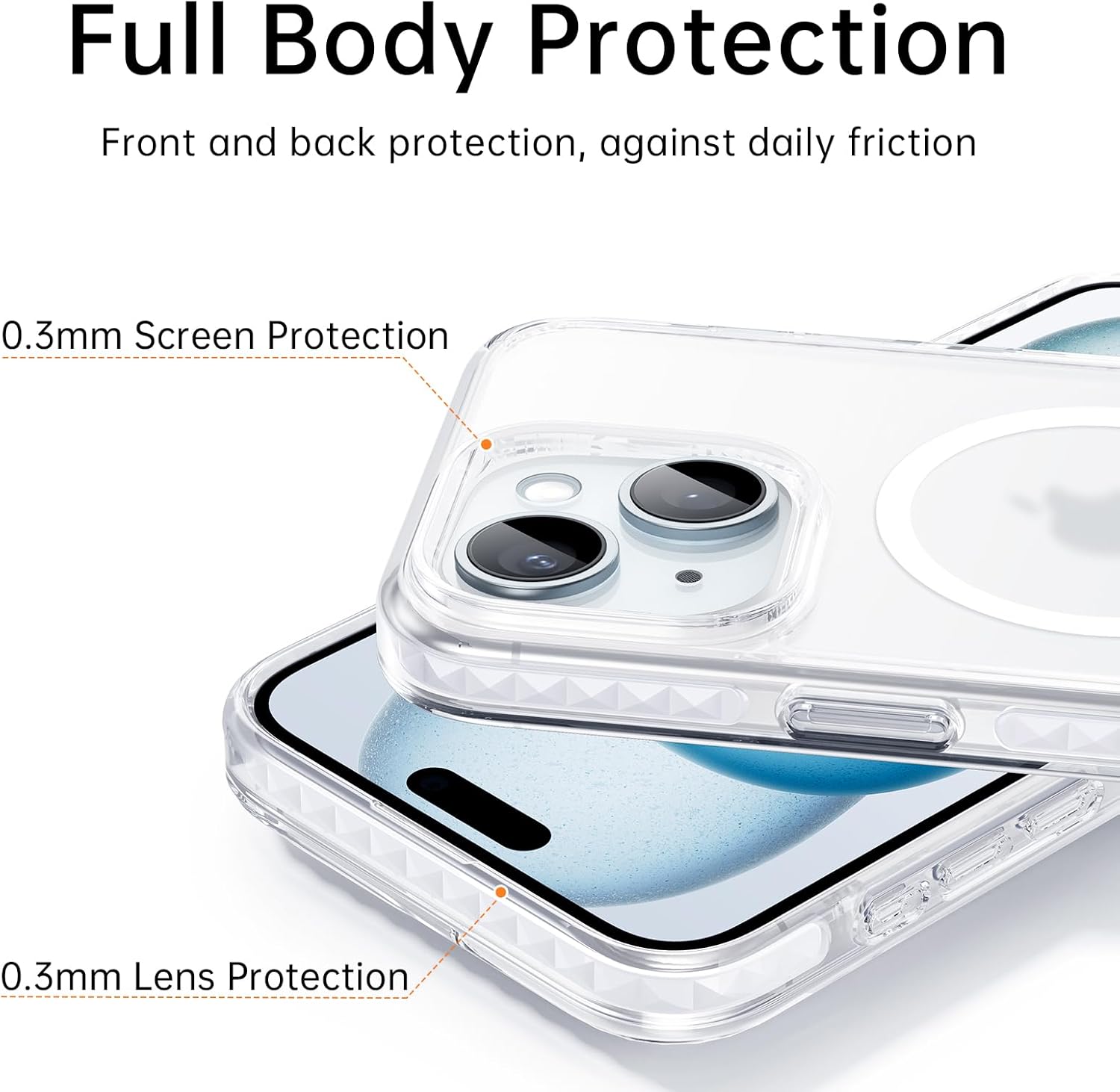 | Additional Features | 5-in-1 Full Protection, Screen Protection, Lens Protection, Compatible with MagSafe Accessories, Wireless Charge, Anti Yellow, Slim Fit, Shockproof, Heavy Duty Protection |