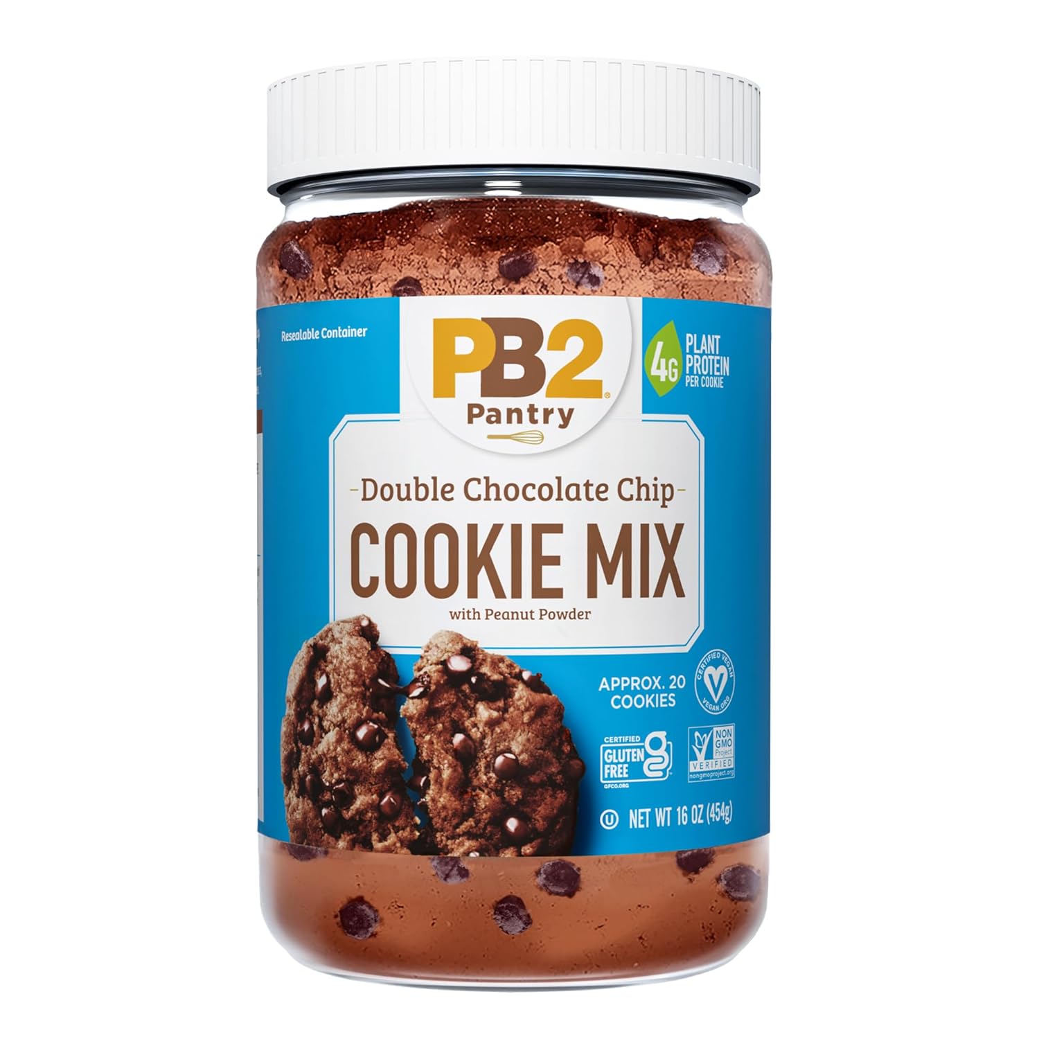 Enjoy the PB2 Pantry Chocolate Chip Brownie & Double Chocolate Chip Cookie Mix Bundle, featuring two delicious and easy-to-make cookie mixes. Both are certified vegan, gluten-free, and made with non-GMO ingredients. Each cookie contains 4 grams of plant-based protein and only 100 to 120 calories. These mixes come in resalable jars, perfect for baking large or small batches. Satisfy your sweet tooth with these treats, proudly made in Georgia, USA by PB2 Foods. Ingredients: Chocolate Chip Brownie: Peanuts, sugar, chocolate chips, cocoa powder, tapioca starch, sodium bicarbonate, and salt. Double Chocolate Chip Cookie: Peanuts, sugar, chocolate chips, sodium bicarbonate, natural flavors, and salt.