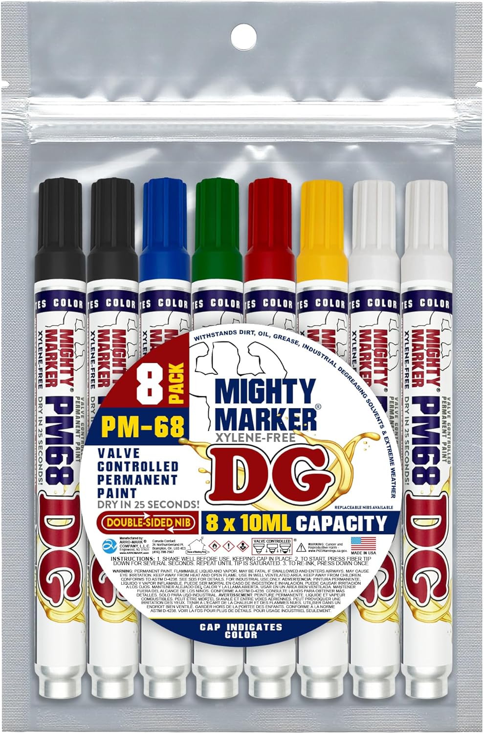 PM-68 DG Paint Markers, Heavy Duty Industrial Paint Markers, Ketone-Based, Xylene Free, Quick Dry, Degrease Resistant, Made in USA, Assorted 8-Pack