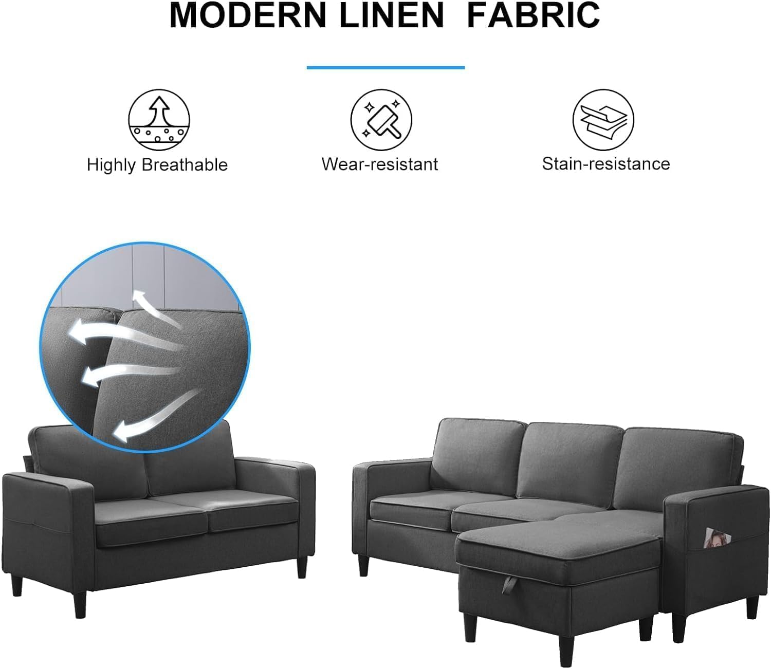 | Size | L Shape Sofa + Loveseat |