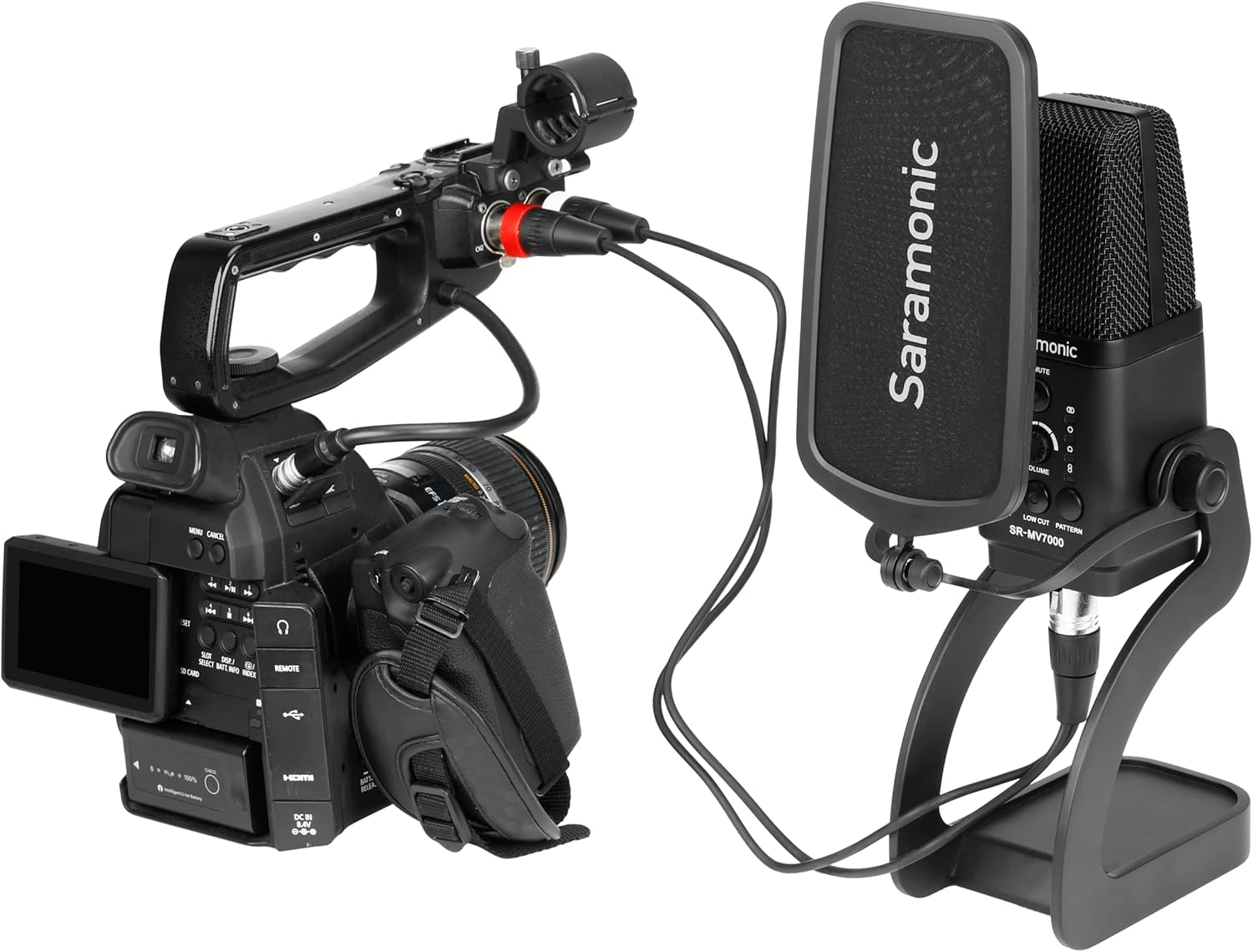 | BuiltIn Media | Item Includes: 1 x SR-MV7000 USB Microphone 1 x Table-Top Microphone Stand 1 x Pop Filter 1 x 1.6′ (0.5m) 5-pin XLR Female to Dual 3-pin XLR Male Y-Cable 1 x 3.9′ (1.2m) USB-C to USB-A Cable 1 x 3.9′ (1.2m) USB-C to USB-C Cable |