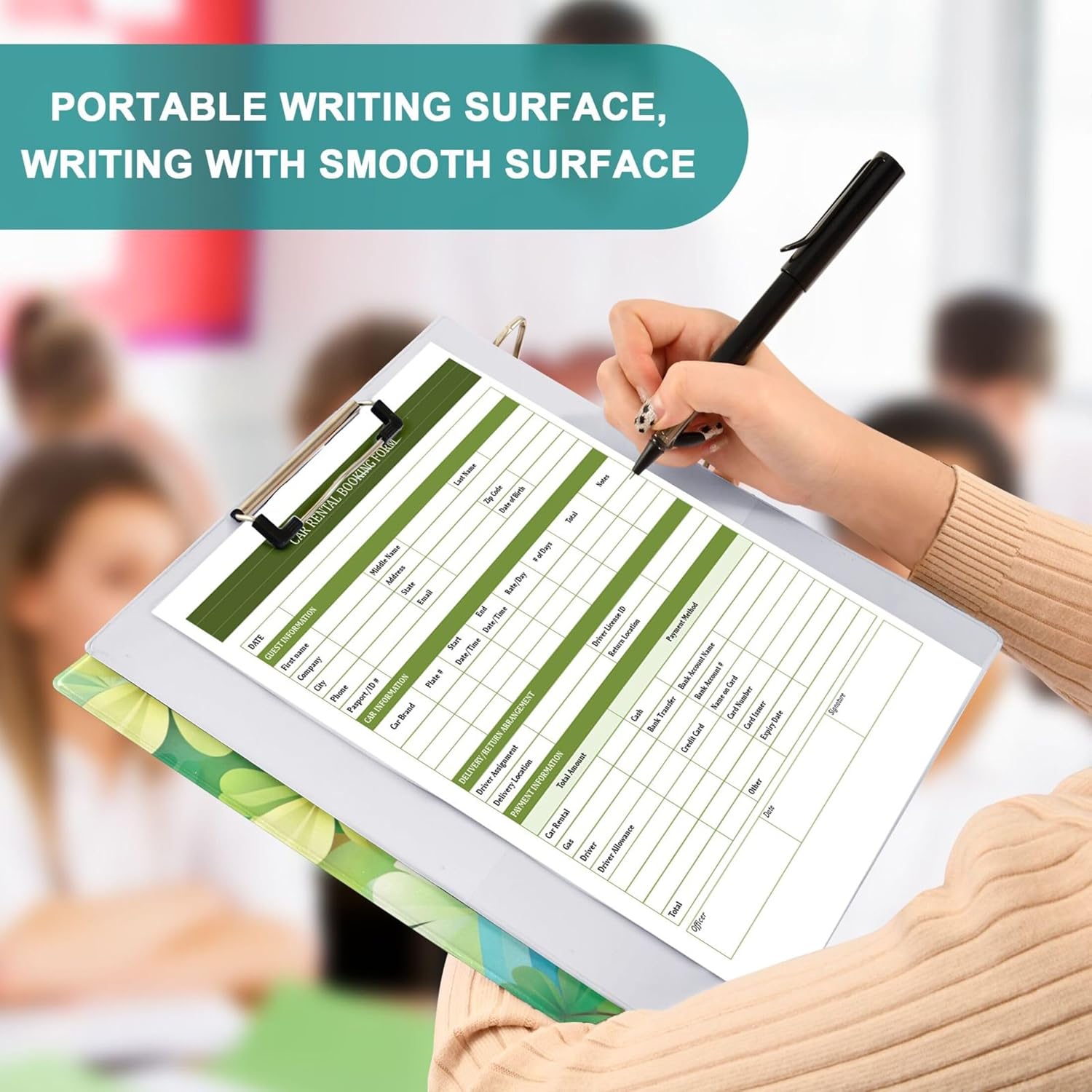 • 【Writing & Storage】A non-slip metal clip on the top left securely holds papers or doubles as a portable writing board, enabling stable, smooth writing anytime, anywhere—perfect for meetings, classrooms, or offices.
