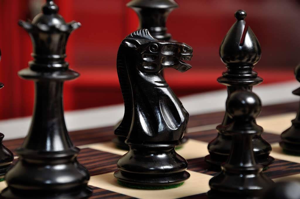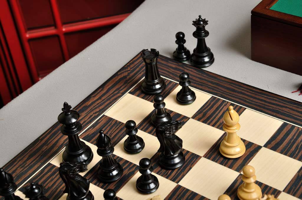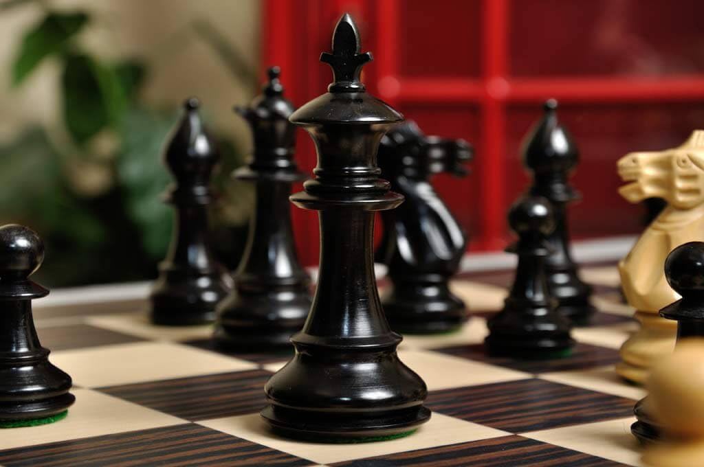 The Chessmen "Looking for Chessmen with a slightly different flair? Look no further than the Royale Series Chessmen from the House of Staunton. Unlike traditional Staunton Chessmen, the unique Kings' fleur de lis and Queens' finials on the Royale Series exude artistic flair to create a very unique and appealing design."The House of Staunton is proud to offer the Royale Series Chess set. A full tournament-sized Chess set, it features a 4.0" King with a 1.5"diameter base. The Chess pieces are hand carved by our master artisans and crafted out of the highest grade woods. The Chess pieces are heavily weighted with luxurious billiard cloth base pads and a beautiful finish.As with all of our Chess sets, the Royale Series Chessmen exemplifies a perfect combination of distinct beauty and functionality. It has been designed to withstand the rigors of practical play while maintaining an elegance which has become the hallmark of a House of Staunton chess set. The design, quality and craftsmanship of this set is UNMATCHED by any set of Chessmen in its price range. Nothing even comes close!The Chessmen are new and each set consists of 34 Chessmen, including four Queens, a standard that was introduced by The House of Staunton in 1993.. THE CHESSBOARD Crafted in Spain, the House of Staunton Standard Traditional Tiger Ebony / Maple wooden Chessboard features Tiger Ebony (dark) and Maple (light) squares with a Tiger Ebony frame. This Chessboard is 0.5" thick, has a satin finish and a beautiful molded edge. THE CHESSBOX The Red Burl Premium Chess Box is lined in green billiard cloth, divided and features brass quadrant hinges and a lock & key. The Premium Chess Box comes with or without the House of Staunton logo laser etched on the lid of the box.