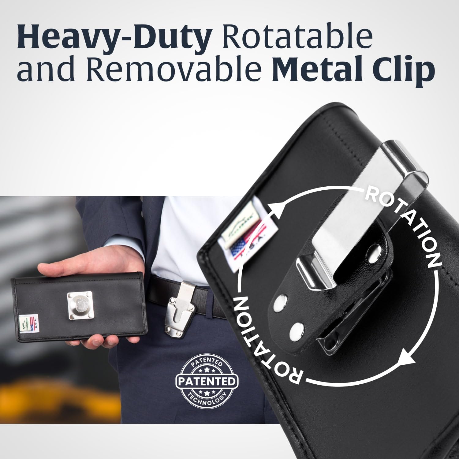 Note: Does not include Thick Case. Turtleback holster made for the Galaxy Z Fold 6 Fold 5 Fold 4 phones equipped thick cases. Our premium bonded leather holster clip is built and guaranteed to satisfy your every-day needs. Designed for comfort, aesthetic ability, and functionality, you'll find our leather holster quickly becomes a daily necessity. With a Magnetic closure system for quick access to your phone, your phone will always be at your hip and ready to use. Our premium leather is beautiful yet subtle; soft yet durable. Ward away dirt and dust and protect your mobile phone from scratches and falls with our tough-as-nails leather holster. Plus, for added ease and mobility, we've included a heavy duty rotating metal belt clip, so you can swivel the holster any way you want and attach it where is most convenient, whether that's at your belt, or your purse, or on your vehicle.