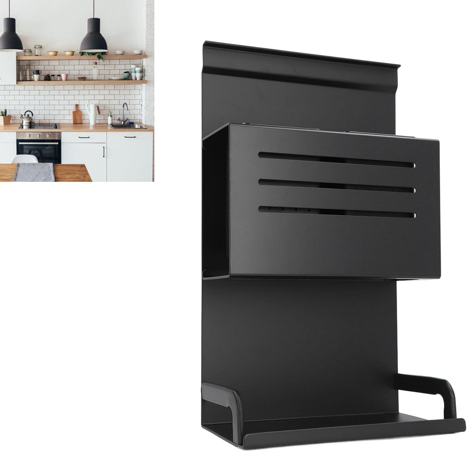 [CREATIVE AND STYLISH DESIGN]: Add sophistication to your kitchen with a creative and stylish wall-mounted rack.[MULTIFUNCTIONAL USAGE]: Versatile storage solutions for your kitchen with a shelf, rack, and utensil holder in one set.[ROBUST MATERIAL]: Sturdy space aluminum construction ensures durability and longevity for daily use.[SPACE EFFICIENT SOLUTION]: Save kitchen space and create a comfortable environment for meal preparation and cooking.[EASY INSTALLATION]: Quick and convenient installation with hanging rod accessories, no extra tools needed.Spec:Item Type: Wall Organizer ShelfMaterial: Space AluminumWeight: Approx. 1290.00g / 45.5ozSize: Approx. 20.5 x 35cm / 8.07 x 13.78inPackage List:6 x ComponentsNote: