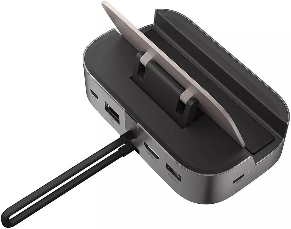 Zotac 7-In-1 Docking Station - M.2 NVMe SSD Slot - USB 3.2C, USB 3.2A, USB 3.0A - HDMI, RJ45 - PD 3.0 The ZOTAC GAMING Docking Station is compact, universal accessory made to expand the capabilities of the ZOTAC GAMING ZONE Handheld Console and other compatible Gaming Handhelds, Tablets, and Smartphone devices featuring a USB-C port with DP capability. Expand USB port connectivity, connect to faster and more stable wired Ethernet, expand the on-device display and mirror or extend it to an additional larger external HDMI 4K display at up to 60Hz, adjust the docking tilt angle, and expand storage via the included M.2 SSD slot for compatible devices. - 7-in-1 Design - Adjustable Dock angle, HDMI 4K@60Hz output, USB-C, USB-A, Gigabit Ethernet, M.2 SSD Storage Expansion, up to 90W PD3.0 output - Compact travel friendly design - 1 x USB 3.2 Gen2 port, 1 x USB 3.0, 1 x USB 3.2 Gen2 Type-C, 1 x Gigabit LAN, 1 x HDMI port, 1 x M.2 NVMe PCIe SSD slot - Fast charging. Up to 90W PD3.0 power delivery. Power supply and charging cable not included - Wide compatibility. Compatible with ZOTAC GAMING ZONE Handheld Console, Gaming Handhelds, Tablets, Smartphones devices with USB-C with DP capability - Expand storage. 1 x M.2 NVMe PCIe Gen3 x2 SSD slot (2230/2242/2260/2280) - Mirror or Extend connected device. 1 x HDMI port - up to 4K@60Hz